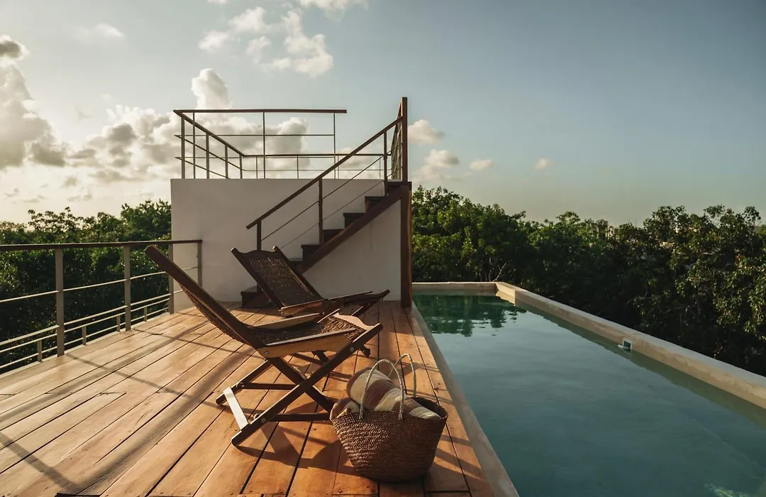 Om van uw vakantie in Tulum Pueblo te genieten, verblijf in 2-slaapkamer Jungle Retreat, Sleeps 10 Comfortably, Rooftop Pool Tulum Pueblo appartementen, gelegen op rijafstand van 10 minuten van de ProKiteTulum Kiteboarding en op afstand van 4 km tot Cenote Canavera. Gasten kunnen fietsen huren.